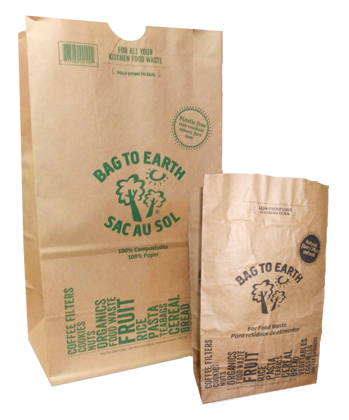L’éco-responsable sac à résidus alimentaires compostable à 100%. Disponibles au Canada uniquement